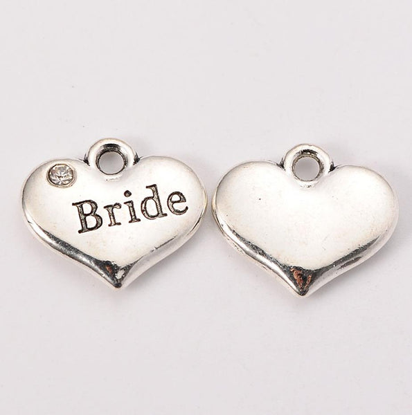 5 TIBETAN SILVER RHINESTONE BRIDE HEART CHARMS PENDANTS 16mm C175