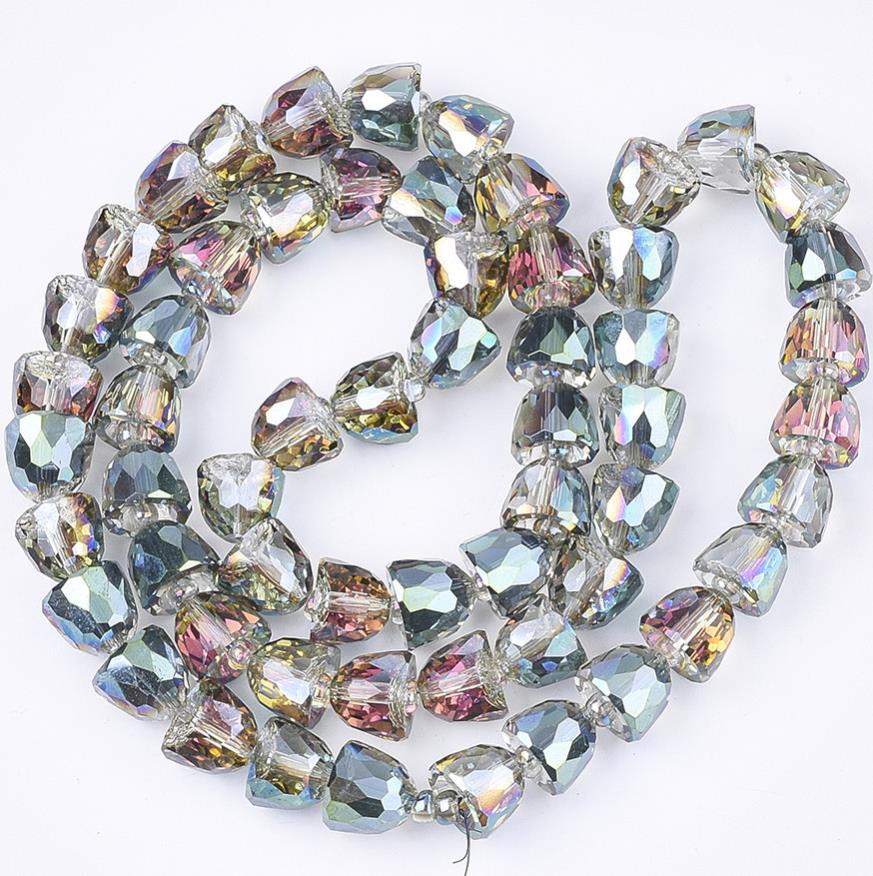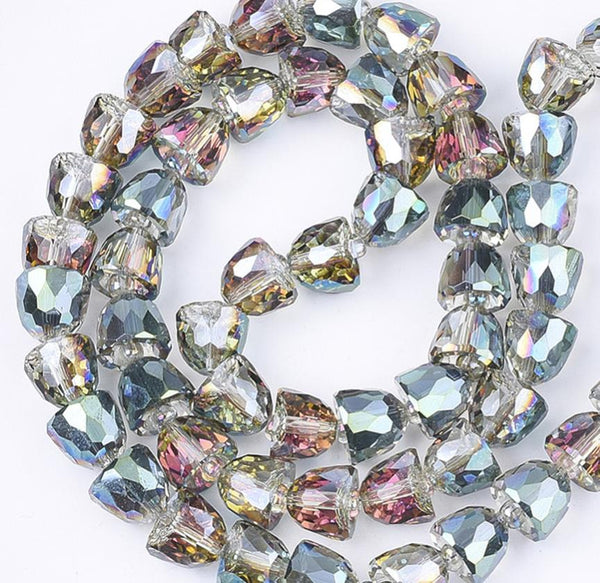 8 FACETED GLASS BELL BEADS 11mm x 9mm AB RAINBOW DROP PENDANT CHARM GLS84