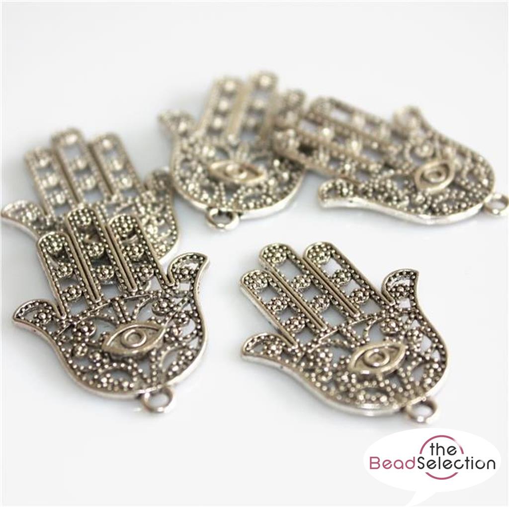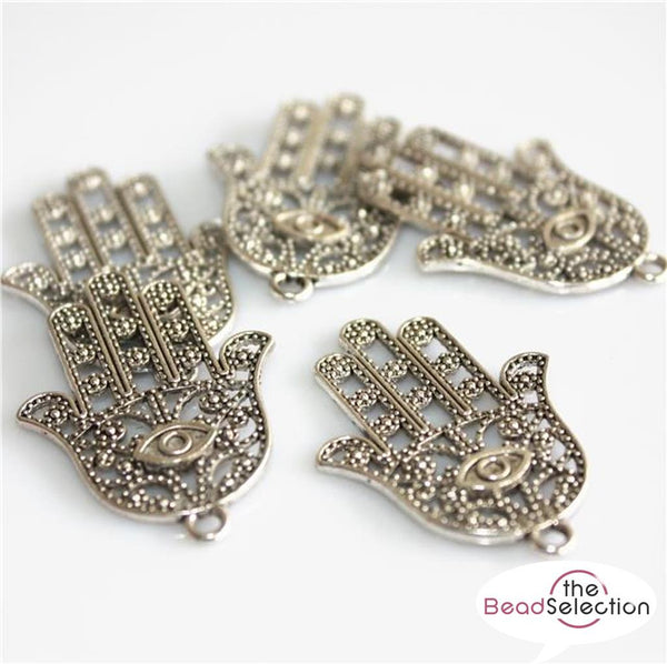 5 LARGE TIBETAN SILVER HAND OF HAMSA CHARMS PENDANTS 33mm X 24mm C78