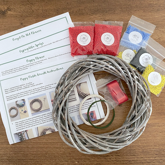 Beaded Flower Kit Poppy Fields Wreath Craft Kit. French Beading kit (TBG-PFW)