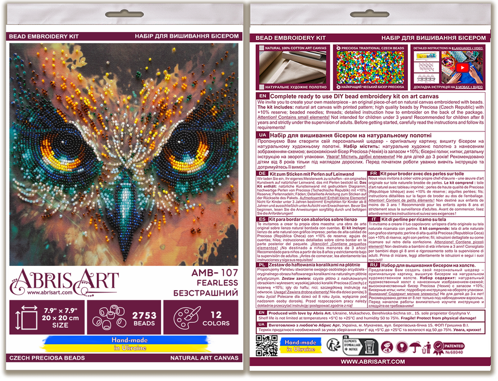 FEARLESS OWL ABRIS ART BEAD EMBROIDERY KIT MIDI 20cm x 20cm ( AMB-107)
