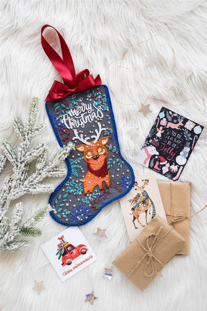 CHRISTMAS FAIRYTALE DEER ABRIS ART BEAD EMBROIDERY KIT STOCKING ( ABE-001)