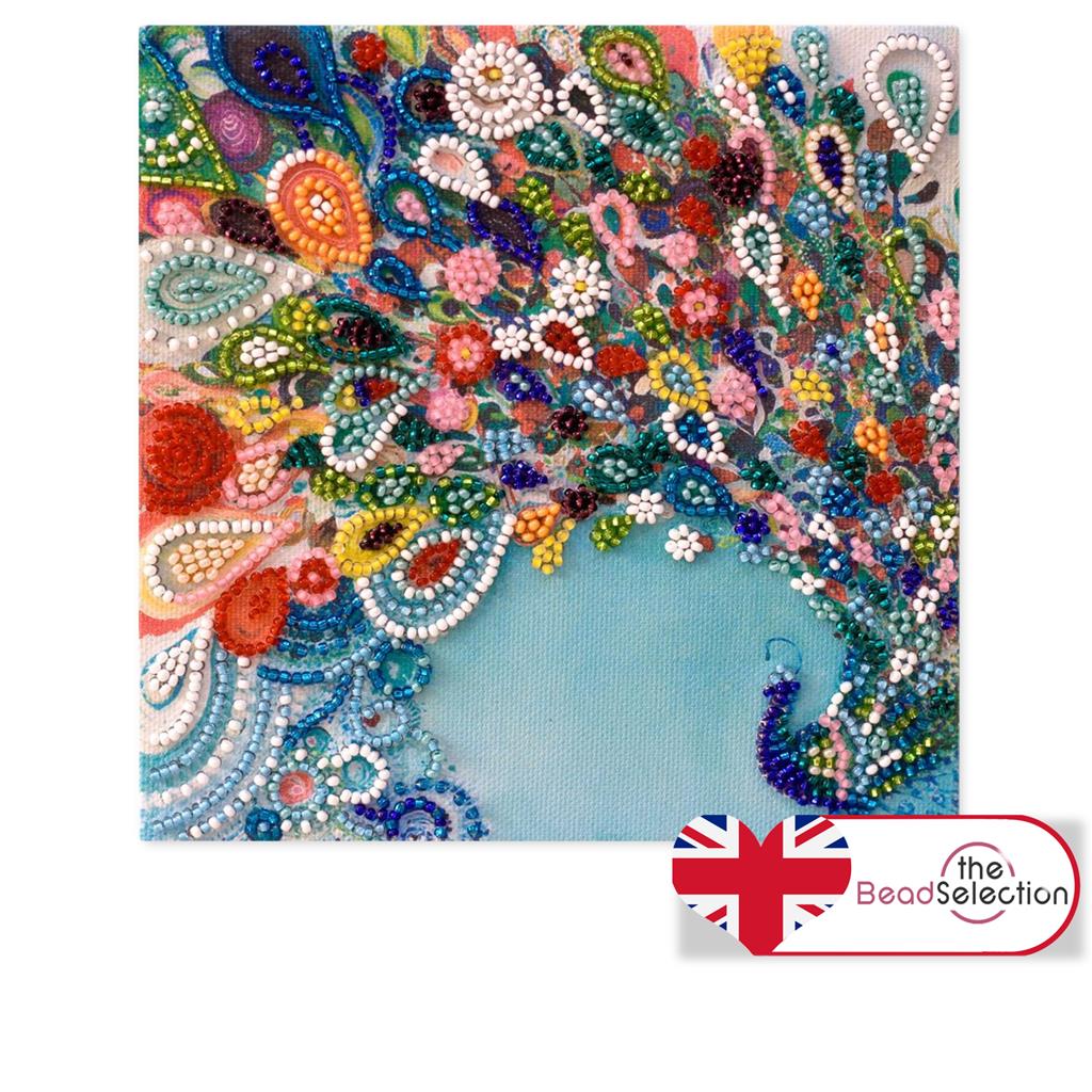 COLOURED TAIL PEACOCK ABRIS ART BEAD EMBROIDERY KIT MIDI 15cm x 15cm ( AM-187)