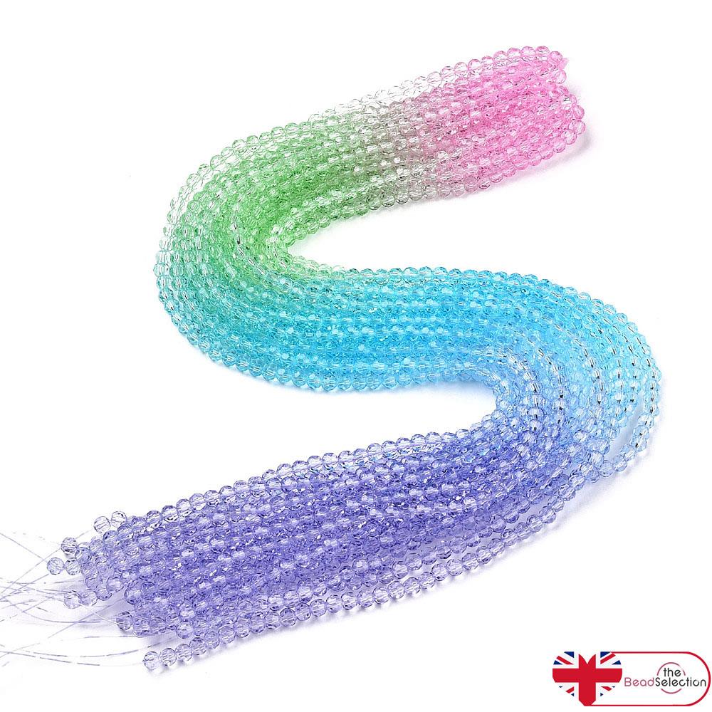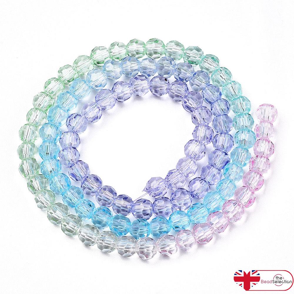 Faceted Glass Round Beads Multi Colour 1 Strand Crystal 4mm Pink Green 90+ RM4